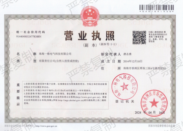 - [01/07]珠海一格电气科技有限公司2020年春节放假通知